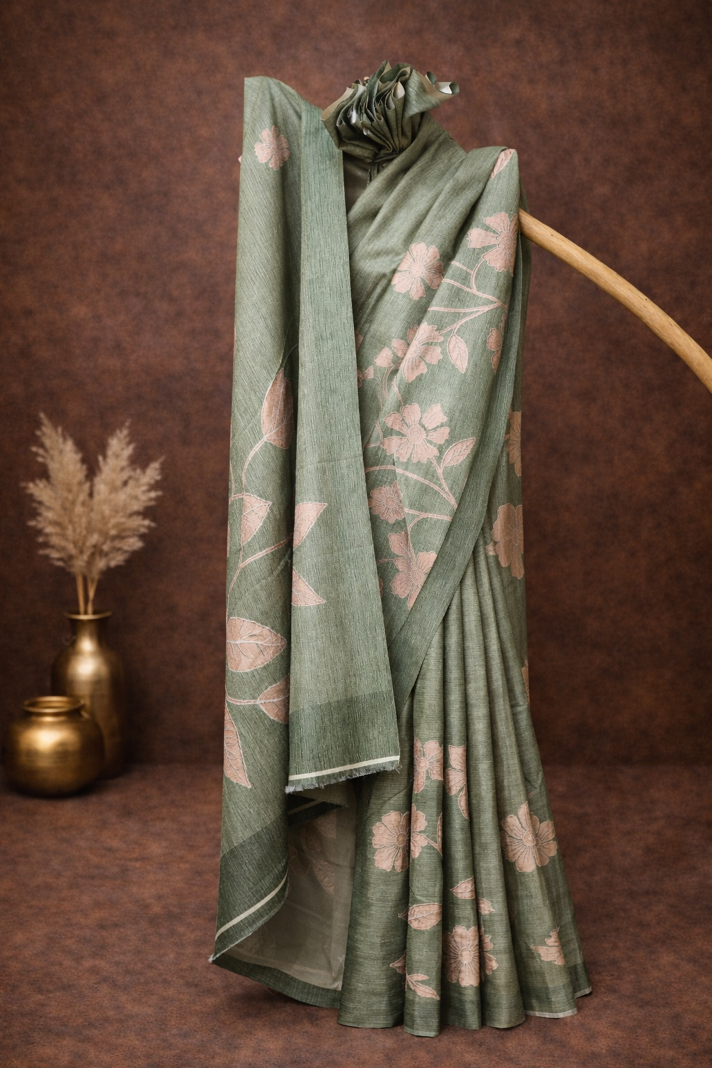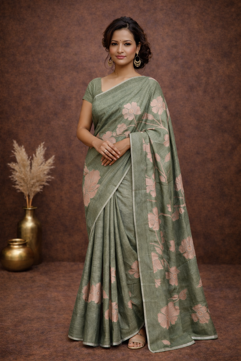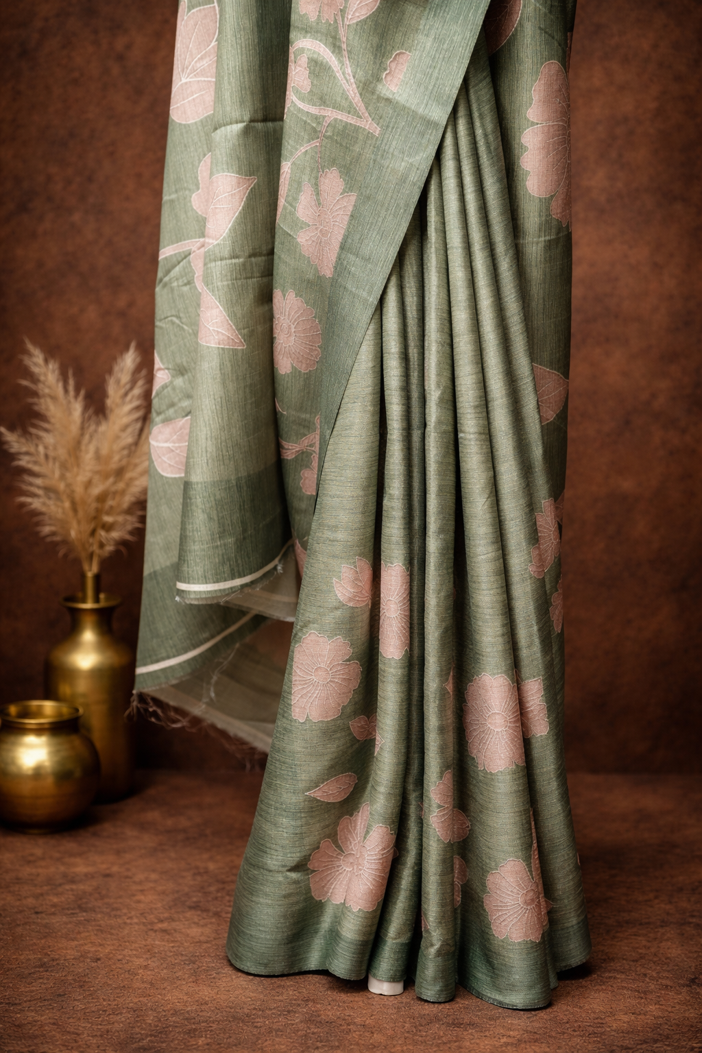 This sage green saree is crafted in a soft blended fabric that drapes beautifully and feels extremely gentle on the skin. The fabric has a smooth, airy texture similar to mulmul, making it ideal for warm weather and long wear.
